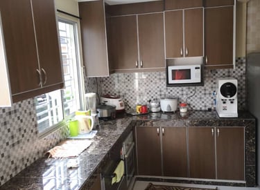 Dapur moden dengan susun atur praktikal dan kemasan berkualiti.